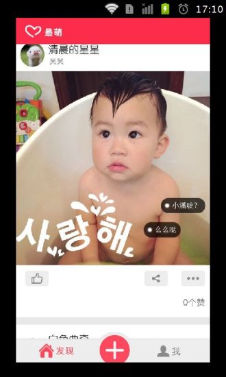 在应用的“发现”页里,爸妈们可以随时看到同龄宝宝的萌照,他们的穿衣搭配、成长故事、逗趣囧态等。
