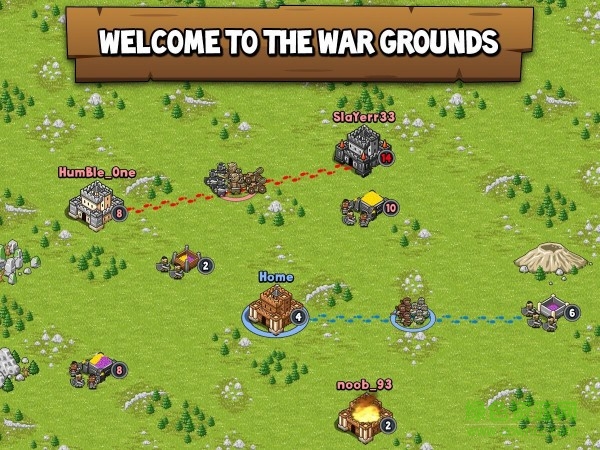 战争之地War Grounds是一款卡通风格的经营+战斗游戏,这种搭配现在很流行,就是比较耗时间,特别升级主城,吃资源,与周边势力交战,在地图上留下你的印记,征服你脚下的土地。经典的卡通像素玩法,喜欢的话赶紧加入吧~