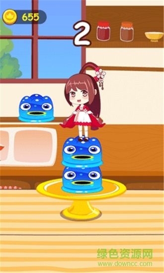 1.点击屏幕进行跳跃,让女孩稳稳落到果冻上
