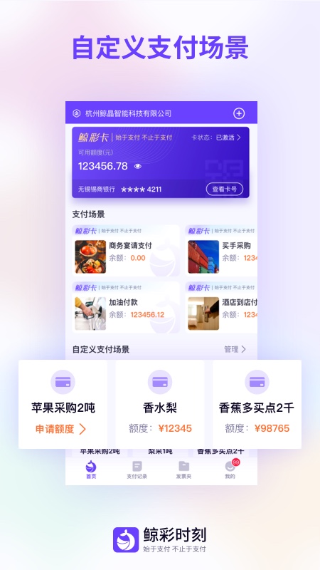 为企业消费提供丰富的场景支持,支付交易,发票收集及管理;
