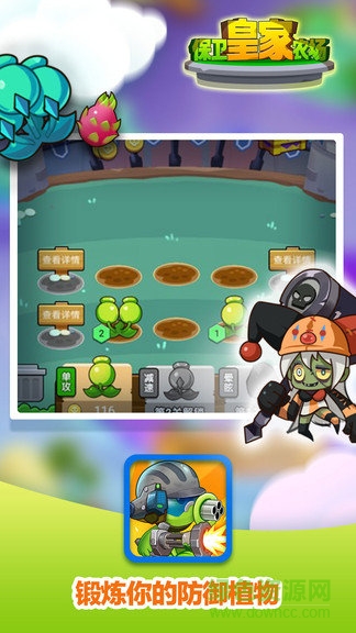 保卫皇家农场是一款好玩的植物大战僵尸手游。可恶的僵尸们来袭击皇家的农场了,国王不在家?植物们是时候起来反抗了!如何快速有效的抵御入侵,需要你开动你的大脑了!创新合成植物的玩法,让游戏更有策略性!植物们,战斗到底吧!