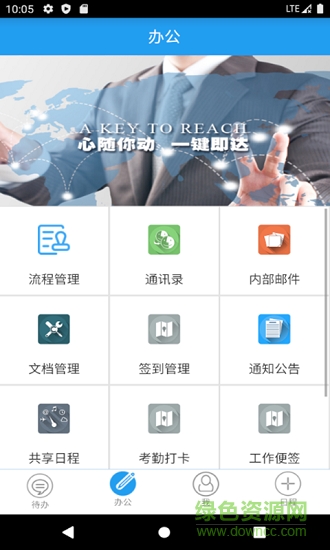 智能OA内容有:流程审批 定位签到 定位考勤 通知公告 日程安排 内部邮件 文档管理 销售管理等;手机端也可以同步PC端自建应用。