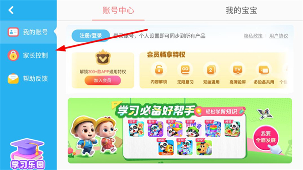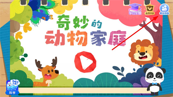 1、点击应用界面右上角的家长中心按钮,进入家长管理界面。