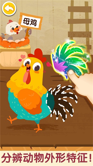 宝宝在游戏中认识各种动物朋友:孔雀,公鸡,袋鼠,狮子等。游戏面向小宝宝讲述神奇、有趣的大自然,让孩子们对这个世界充满好奇,鼓励启发他们探索身边的世界。儿童在这里将获得儿童早教知识,锻炼宝宝逻辑思维能力。