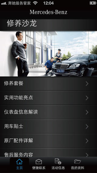 奔驰服务管家iPhone版是一款由梅赛德斯-奔驰推出的服务型app,想和爱车更亲密接触?那一定不要错过“奔驰服务管家”APP,它可是让你和爱车随时绑定的好帮手!里面整合了多方面的售后服务相关信息供客户随时查询,囊括用车贴士、便捷联系方式、精品及选装配件信息、实时活动信息、实用助手等功能,是您用车养车的好帮手!