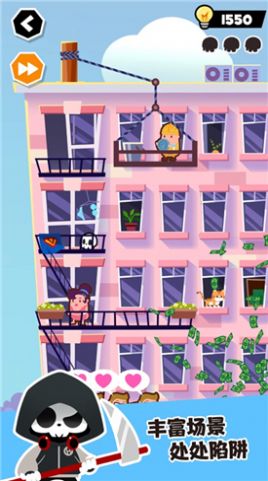 谁也别想跑,非常有趣味的一款小游戏,扮演死神的你,将要制造意外来不断获取你所需要的资源,各种脑洞大开的奇异事件,卡通动漫的形象让人感忽而不到害怕!游戏的朋友快来安装体验吧!
