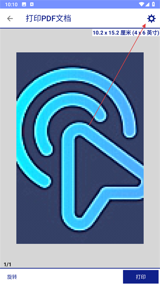 2、在打印PDF文档界面右上角找到设置图标并点击,进入打印设置页面。