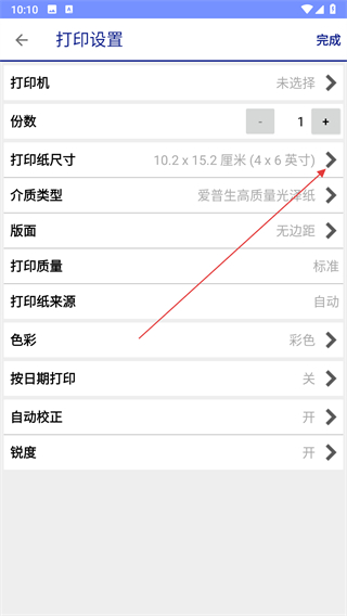 3、在打印设置页面中找到打印纸尺寸选项并点击,进入打印纸尺寸选择界面。