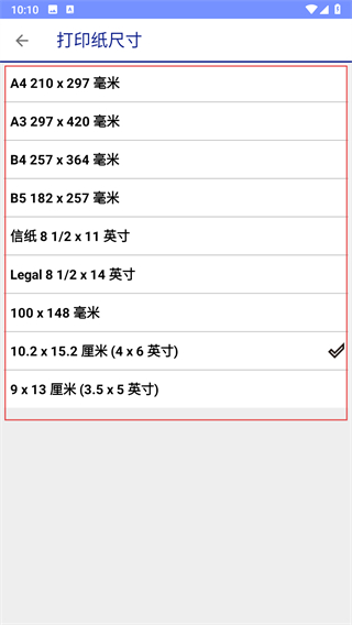 4、在打印纸尺寸界面中选择所需尺寸选项,完成打印纸尺寸的更改操作。