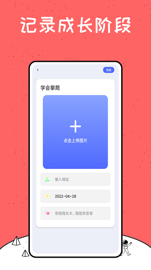 记录宝宝的美好瞬间,时间地点轻松添加,和宝宝一起成长。