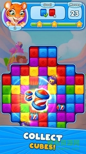 2、可爱的卡通画风打造,简单的消除玩法模式,让玩家们轻松享受消除游戏的乐趣。