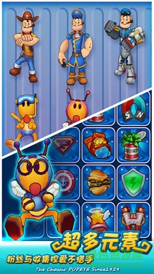 大力水手波派是个很有正义感的小个子水手,爱抽烟斗,爱打拳击。总是在吃完一罐菠菜之后,就会力大无穷,击败情敌布鲁托。官方正版休闲跑酷手游《大力水手》还原经典,这里不仅有叼着烟斗的百变波派,更有作为道具出现的菠菜罐头。为爱奔跑,挑战自我!在《大力水手》中可爱的女友奥利弗被boss抓走,波派会救出真爱吗?