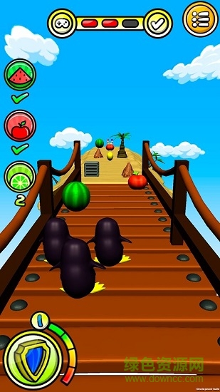 收集水果不要撞到障碍,获得奖金解锁新的关卡,你的任务就是不断向前冲。