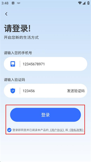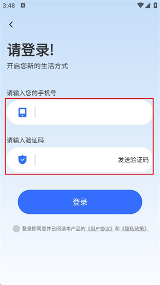 3、输入验证码,勾选同意用户协议和隐私政策。