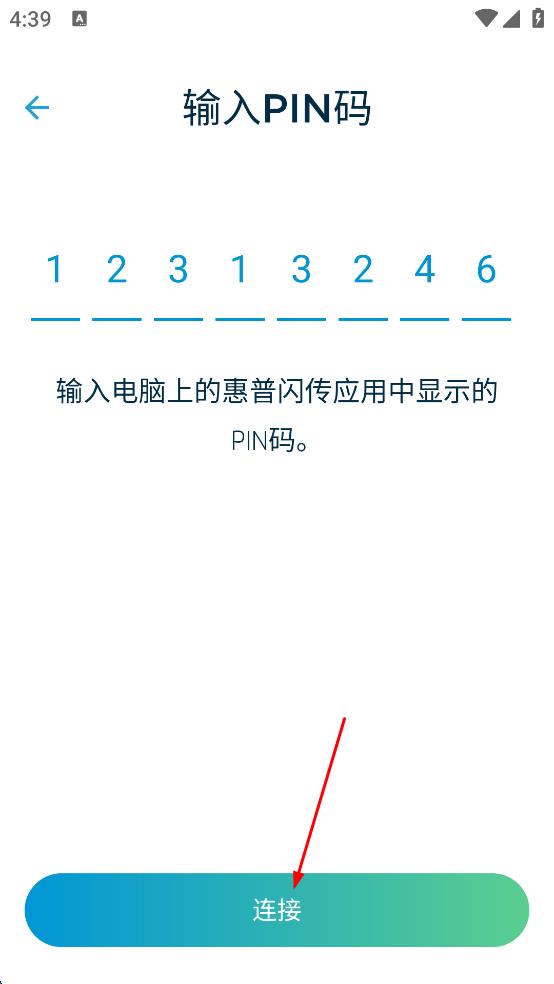 3、在输入PIN码页面,输入电脑上惠普闪传应用中显示的PIN码。
