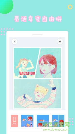 支持1~9张图片,自由选择布局拼图