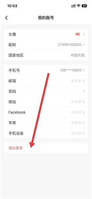 3、在我的账号页面中,找到并点击下方退出登录选项。