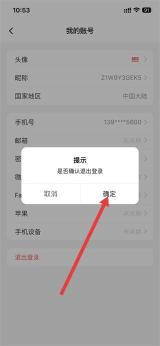 4、在弹出的提示框中,点击确定,即可完成账号退出。