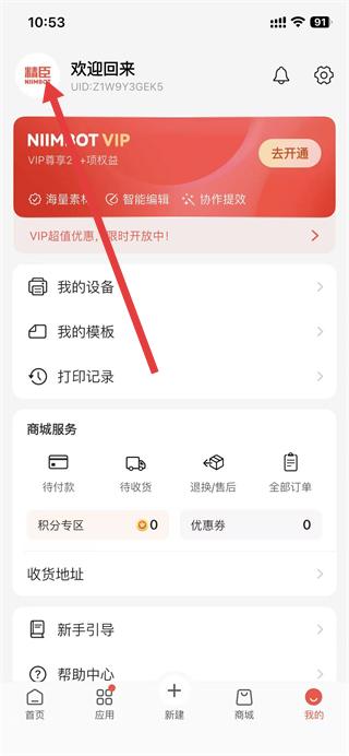 1、打开精臣云打印APP,在首页内点击右下角我的图标。