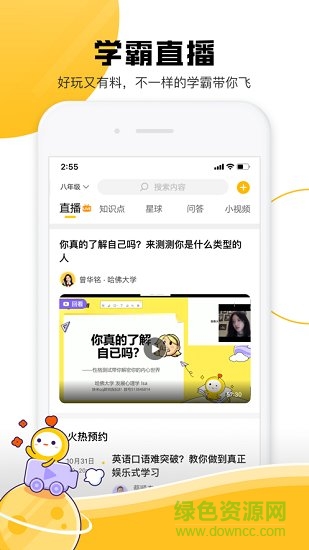 学霸直播:每周会有学霸在产品中进行直播分享,交流自己的大学生活、心路历程、成长故事等等,走过路过不错过,看过以后飞速成长!