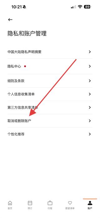 4、在隐私和账户管理页面,点击取消或删除账户选项,按提示完成账户注销操作。
