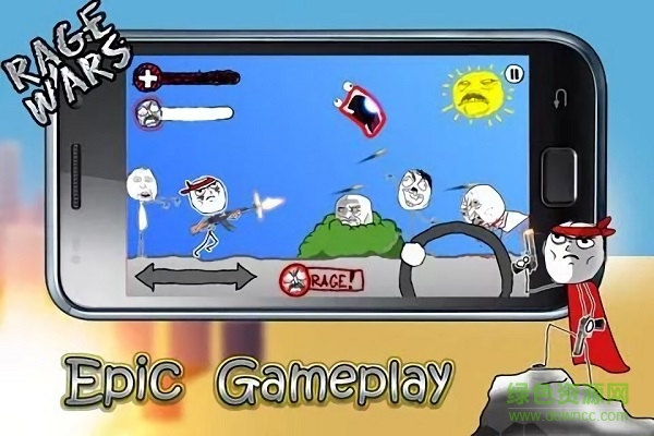 不断升级武器射杀敌人来营救被绑架的爱人。和其他射击类游戏相比愤怒的战争游戏拥有不同的武器、场景、敌人的挑战。愤怒的战争最大的特色是游戏的人物都很喜感,是暴走漫画里常见到的,喜欢的朋友赶快试玩吧。