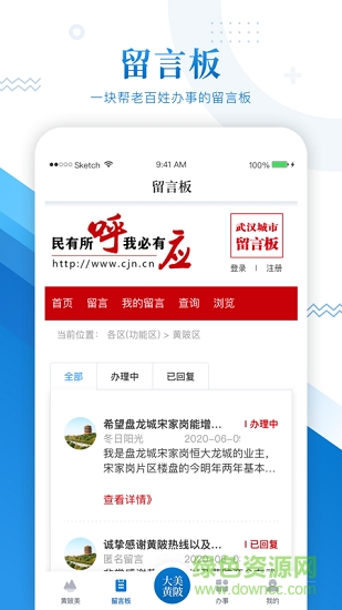 3.随时了解黄陂区的人文风俗,政务要闻,政策信息,活动信息,旅游指南,还有便民服务功能查询办理等