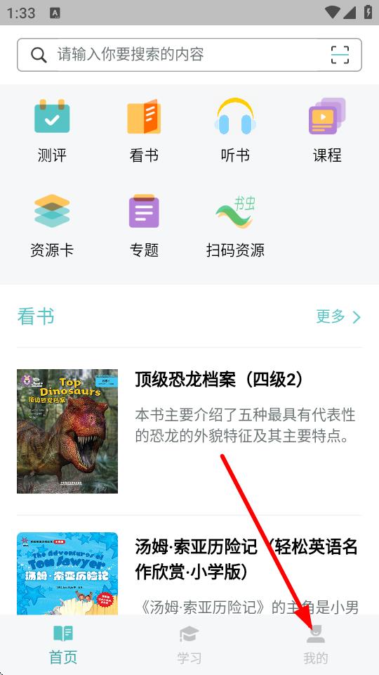 1、打开外研阅读app,点击底部导航栏中的我的选项,进入个人中心页面。