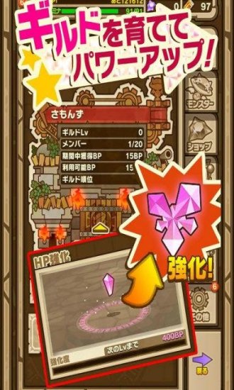 玩家可培养自己的队伍,并透过攻略地下城来获得素材,进而将旗下角色进行进一步地强化,或是进化成更强大的怪物