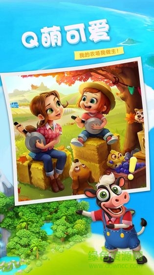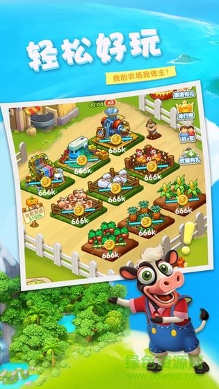 1、卡通清新的农场家园,Q版的小动物形象,自由规划农场的每一片土地,提高收益为根本;