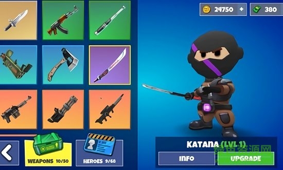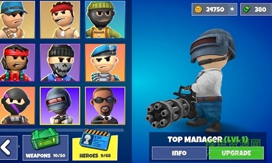 1)、战士大逃杀 中文版人物和武器都是要购买的,所以这里需要很多的金币或者绿钞,尽可能的想办法累积它们;