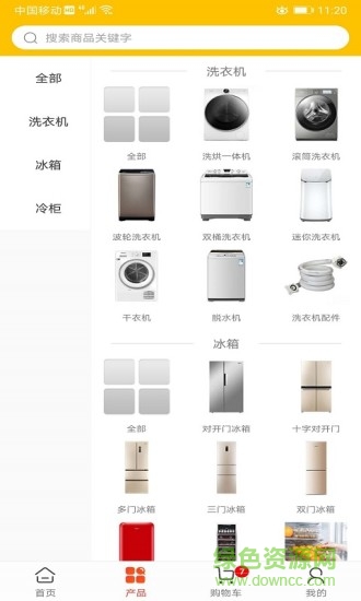 产品分类清晰,洗衣机、冰箱、冷柜等产品类型一目了然,挑选适合的产品购买。