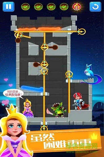 3、游戏中玩家要将身处危险的公主解救出来,展开益智闯关冒险。