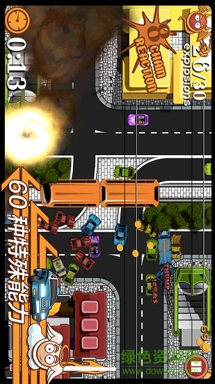 由于游戏玩法需要,我们采用俯视的视角体验来观看整个场景,3D的画面中,我们看见了来来往往的各式车辆,仿佛真实的城市马路景象重现,更妙的是小车之间相撞时的碰撞特效,那种抖动感和瞬间塌陷的凹凸效果,及爆炸时的火花四溅,非常逼真,代入感十足。