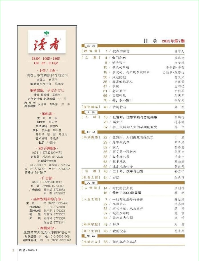 读者2015年4月上pdf高清版,小编推荐《金门之恋》导读:4月初,我去了一趟厦门。这个季节,上海仍嫌阴冷,厦门的气温却已经接近25℃,人可以穿短袖,走稍微久一点都会流汗.....