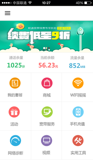 2、该应用涵盖套餐信息查询、免费WIIFI、点券商城、流量包办理及优惠、实用工具等功能。