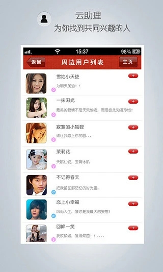 3)可以让云助理帮你找共同兴趣的人,还可以好友间私信聊天互动。