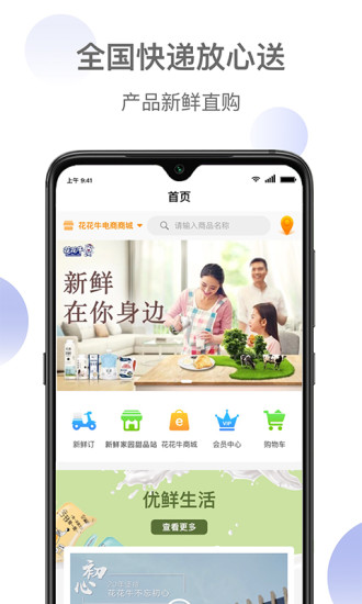 1、“花花牛新鲜家园”是花花牛乳业集团旗下新零售体验一站式服务平台,线上APP、微信小程序下单