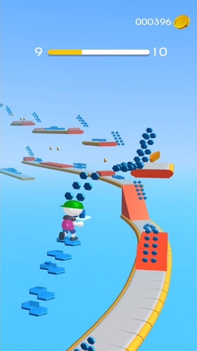 道路可以自己来创造,在奔跑的过程中你要尽可能收集那些砖块,遇到空缺的地方就能够将其填补。这一路上还有很多有趣的道具,拾取后即可即时生效,玩起来还是挺有趣的,简洁清新的画面和休闲玩法,非常适合现代快节奏的生活,玩起来不会有任何的压力。