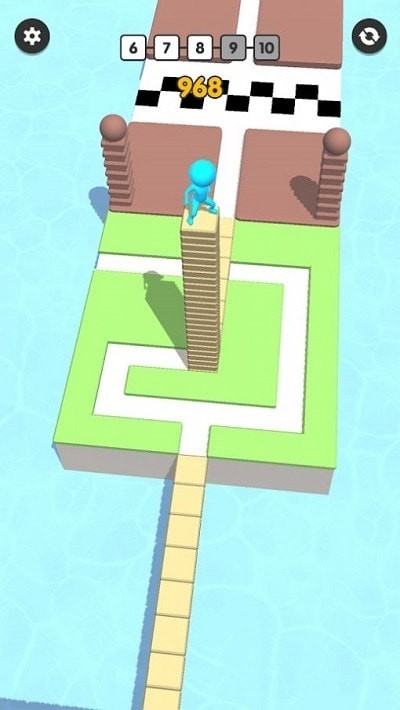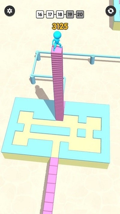 c、迷宫图形中滑动角色收集所有的砖块,不断增加高度解锁全新难关;