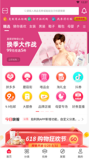 1.拍利购汇集了淘宝、天猫等.上百万信誉商家最新折扣、优惠券的导购平台。