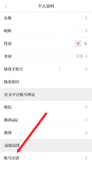 4、在个人资料的页面,点击账号注销,按流程完成账号注销操作。