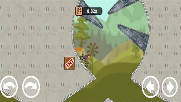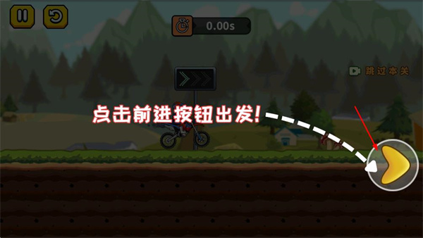 3、在关卡中点击前进按钮操控摩托行进,完成赛道挑战获得胜利评价。