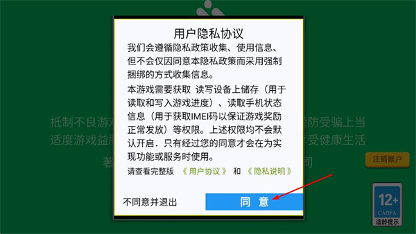 1、进入摩托竞技游戏界面,查看用户隐私协议后点击同意按钮,进入主界面。