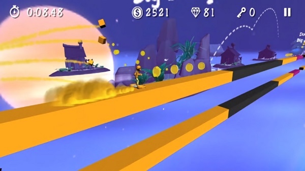 玩家能够随时随地的进入游戏,享受一场十分有趣好玩的闯关跑酷,清新简洁的卡通动画场景,玩家在游戏中能够享受到极为放松和舒适的视觉享受。