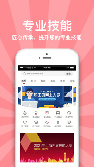1、课程内容丰富多样,覆盖多行业、全岗位,整个职业生涯,学习板块包括热门学习、商业知识、专业技能、行业知识、终身学习、职工健康、职工名师、热门活动、学历提升、实战训练。帮助职工提升个人专业技能,综合素质,成为面向未来的产业精英。