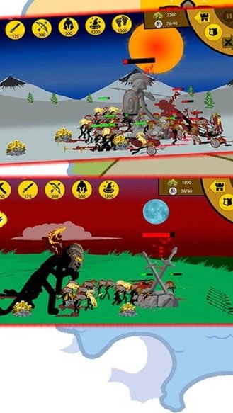 火柴人战争终极版中文版玩法紧张、精彩,延续了火柴人战争系列经典战斗玩法,模式多样化,游戏玩起来还是很轻松的。场景可以自由切换,玩家可以选择不同武器和对手进行生死pk,像弓箭、火炮等武器都可以体验!