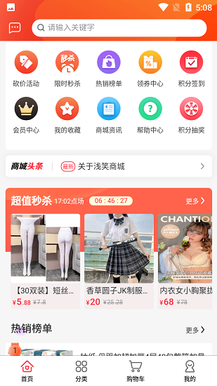 浅笑商城最新版是一个全新的手机购物软件,这里有种类丰富的商品提供给大家购买,不管是日程生活用品、护肤服饰还是其他类型的产品全部都有包括在内,软件中还会有限时抢购活动等待着大家来参与,让你花低价就能买到喜欢的商品,绝对是大家的省钱小助手,有需要的朋友快来下载用起来吧~