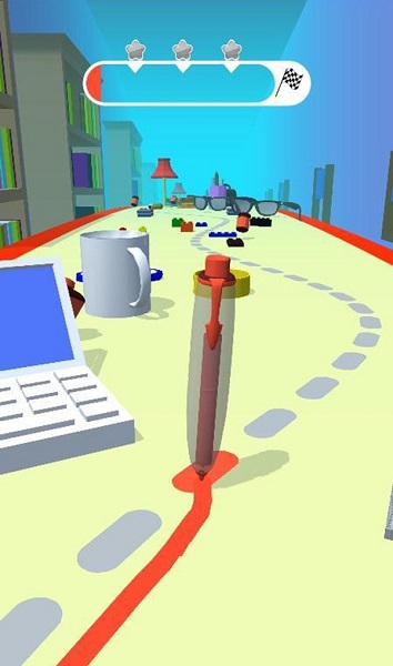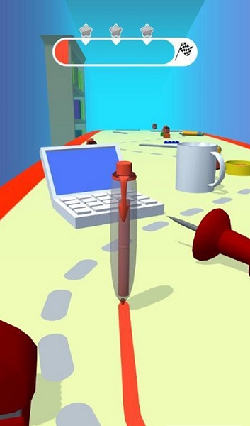 舞动的笔,帮助笔到达终点线,避开闯关过程中出现的各种障碍,游戏中玩家需要沿着一个桌面不断的前行,游戏中玩家需要快速控制和实现多个级别高难度笔尖冒险挑战,游戏中玩家可在不同速度难度的模式中开启笔尖的疯狂跑酷之旅!