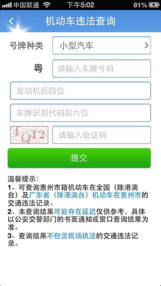 机动车的交通违法查询——随时随地了解车主名下机动车的违法情况,包括:违法时间、违法地点、违法内容、违章金额和违章扣分;
